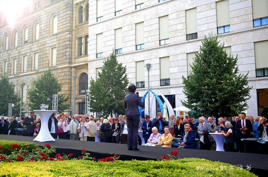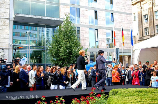 这里是嘉年华的主要舞台,灰色衣服的应该是位嘉宾,在她致辞之后不久,随着人群的攒动,就知道总理默克尔就来了。