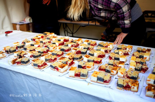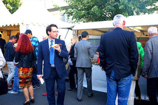 人似乎也见惯了这个场面,并没有水泄不通的围观,在总理亲切的致辞之后,很快整个会场又恢复了喧闹。各种小吃摊位也重新热闹起来,蛋糕、面包、香肠、牛排、冰淇林…种类真心不少。
