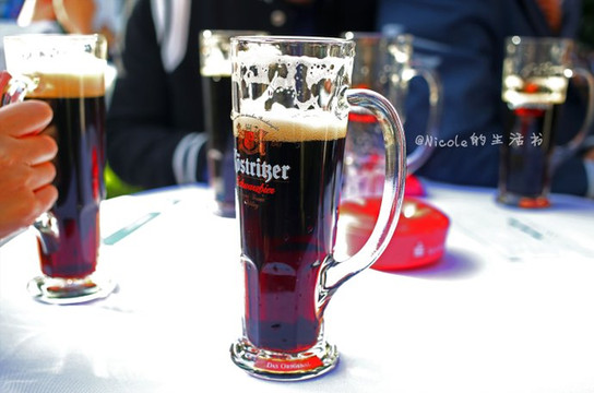 能喝酒就得能造酒,所以当之无愧是世界上首屈一指的造酒大国,光看这现场的各种鲜酿啤酒,就可以看得眼花缭乱。终于在众多酒中找到卡力特黑啤,顿时眼睛就亮了,在国内就没少喝,现在还是最爱它。卡力特黑啤就源于图林根市,是目前销量最好的黑啤,它不但具有纯麦芽和酒花的巧克力香味,而且难得的是口感柔和、回味甜爽,搭配口味重的肉类再合适不过啦。