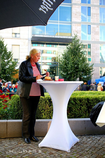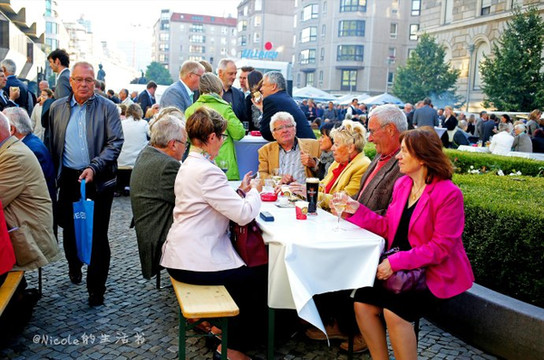黑色衣服的就是这位亲民的总理了,很可惜位置不佳,距离太远,没拍到正面。虽然对默克尔没有过多了解,但对这位历史上的第一位女总理还是怀着几分敬佩。一个人的成功不是没有道理的,如此亲民的举动应该也是她受爱戴的原因之一。也从另一个方面再次证实,啤酒对人来说多么重要,这样的聚会竟然总理都亲自出动了。