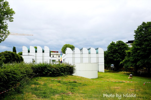 巴士从酒店出发,一出大门就看到了酒店对面的一座非常有特色的白色建筑,屋顶的造型与悉尼歌剧院颇有几分相似。这就是著名的包豪斯档案馆,而它著名的原因之一就是它这圆角形立面的独特建筑风格。