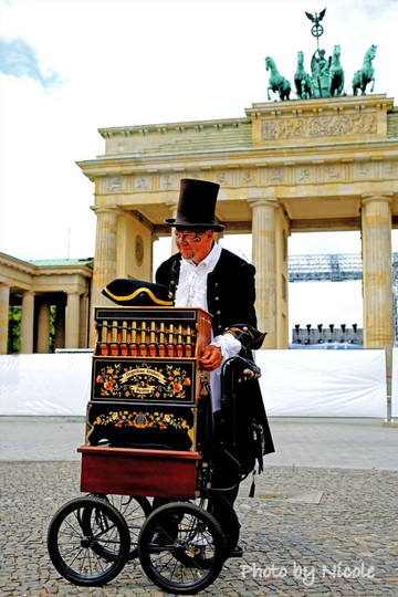 无意中发现这个摆弄乐器的人,与背后的勃兰登堡门竟然可以浑然天成地融为一体。