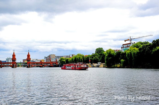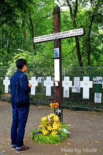 在墙边,还有这条静静流淌的河,她叫做施普雷河,虽然默默无闻,但河畔草木葱茏、生机勃勃,两岸更是一道风景,远处还可以清晰看到遗留下来的哨岗。