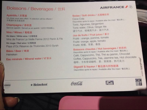 回程我们乘坐的是法国航空的双层大飞机,还是挺豪华的,餐食也很不错~就是会误点啊~飞机故障延误了两个半小时。