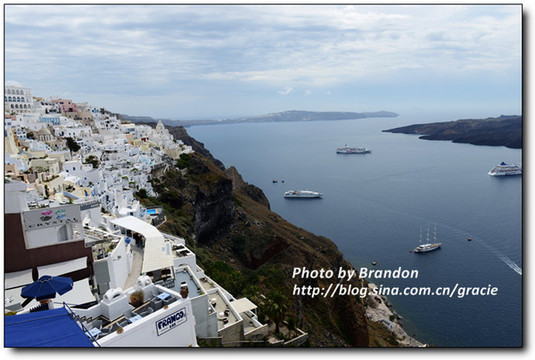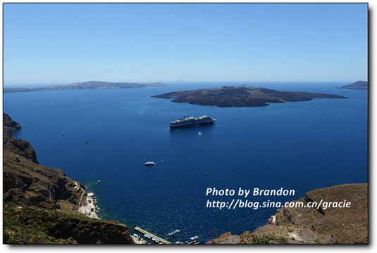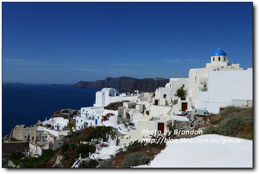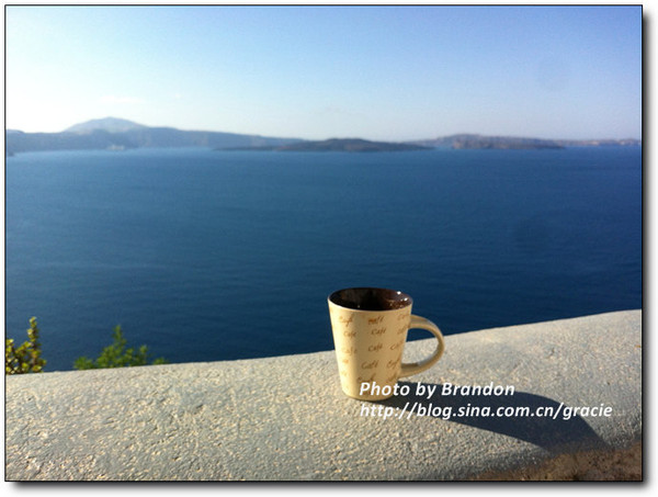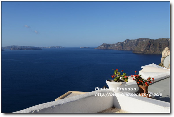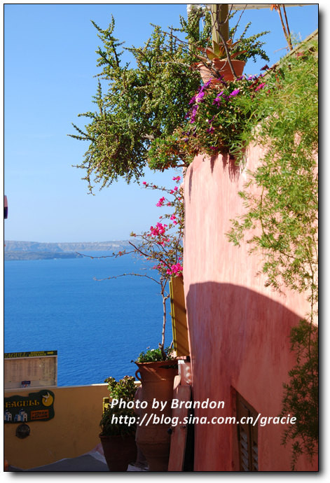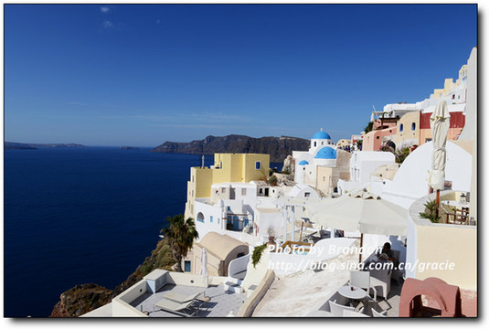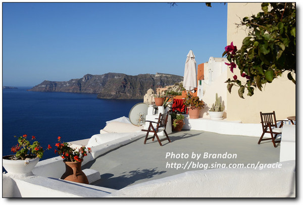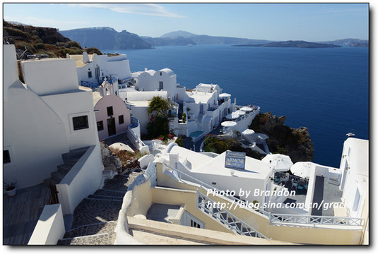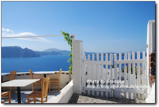 虽然已经过了正午,阳光却格外热烈起来。街道上的人渐少,大家都躲进了餐厅或咖啡馆。行走和碧水还在路上走着,他们刚刚找回了丢失的iPad,心情正好,尽管饿得前心贴着后心,还是坚持爬到了圣岛最高处,挑了一家视线最好的餐厅吃饭。平日里,走路溜墙根,正午不出门,小心翼翼保护自己不被晒黑的碧水,硬着头皮坐在了露台的位置上,只为每一眼,都是最美的爱琴海。