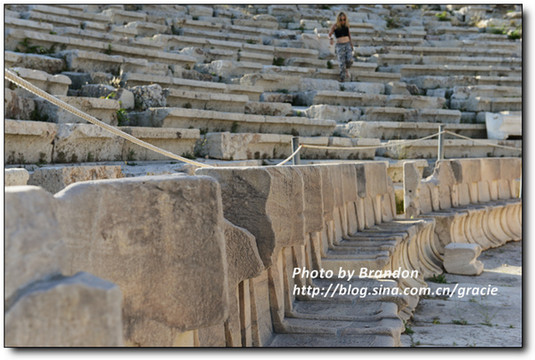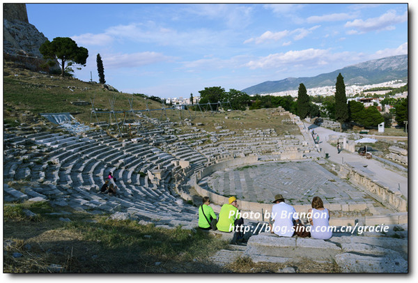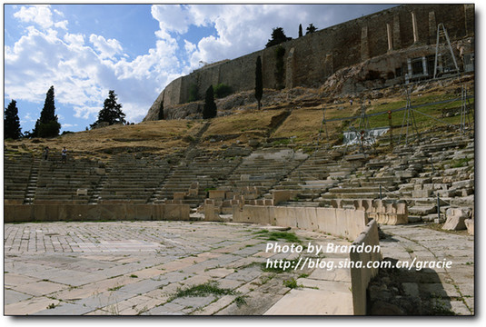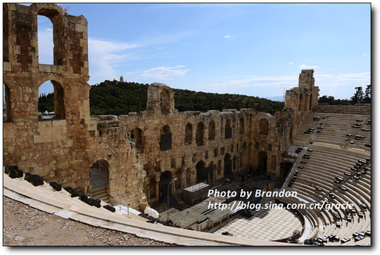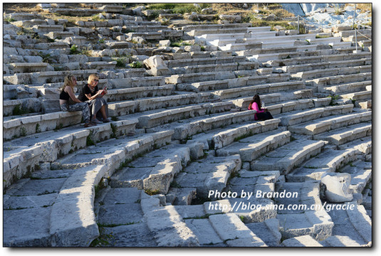 -卫城里有两个半圆形的剧场,比较破旧的那个才是酒神剧场。另外一个叫做阿迪库斯音乐厅,是罗马时期修建的,现在还在使用,只有有演出的时候才开放。