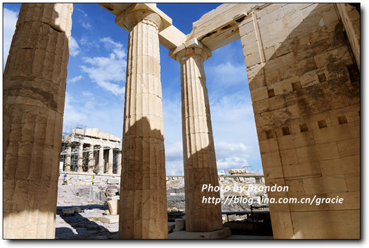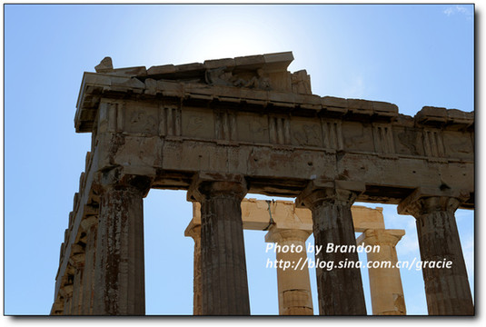 行走和碧水到达卫城的时候离关门只有两个多小时,太阳还好好的挂在天上,大队人马的游客都已离去。退去纷扰,卫城真容尽显。两千年的纷繁岁月如弹指一挥间,凝固在斑驳的石块中,化成沉静、坚实、恢弘的神庙地矗立在山顶。