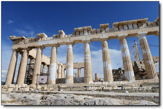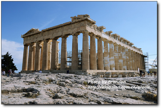 雅典人喜欢简洁有力的垂直线条,女人的裙摆,单调的石柱都被这些纵向平行、间隔适当的竖线刻画得简约灵动,甚至从埃及人那里学来的庙宇建筑,也要把原本只有支撑功能的圆柱从屋里搬出来,在墙外码上一圈。即使智慧如女神雅典娜,也料想不到这个小小的内衣外穿会成为世界建筑的丰碑,被一代一代地效仿致敬。经历了各种浩劫,虽然只剩下沧桑的石柱,也难掩其宏伟和优美。