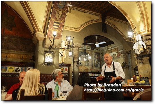 餐厅的装修及其古典和艺术,让人禁不住要走进去坐下来吃点什么。食物的味道也很赞,同样有T骨,但是看着比IL LATINI更生一点,没敢尝试。