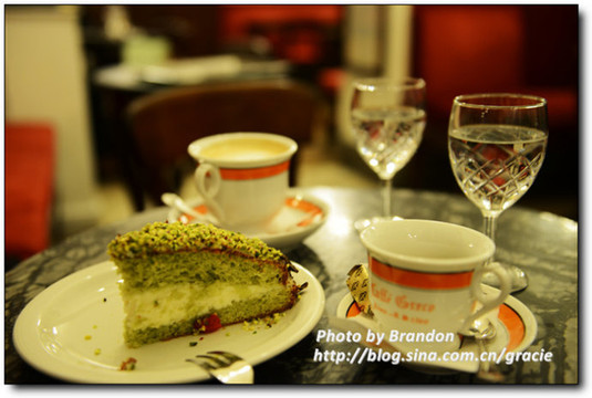 行走和碧水都是瘦子,对美食没有那么狂热的追求,他们更愿意在古迹旁边的街角餐厅坐下来,一边仰望历史一边填饱肚子。或是寻个有历史的咖啡馆,咂着苦涩的espresso遥想两百多年前的生活。这里只推荐几家有名有姓的。