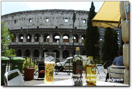 在这家连续吃了很多顿,因为他们和斗兽场只有一街之隔,坐在临街的位子上,就可以把酒问斗兽场了,而且它就在我们住的酒店楼下。