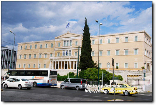 大巴车停在的一侧,碧水没认出来,只凭直觉多看了几眼这个黄色的大楼。从卫城回来的路上才突然醒悟这是雅典的天安门。所谓宪法广场小得只像个街心公园。