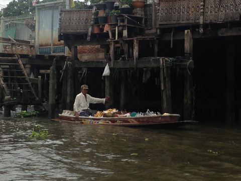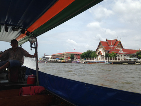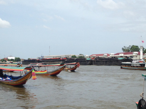 码头很近,步行10分钟就到。在码头上看到有包船出游,选择了2小时的长尾船,经停渔人码头的项目,1300泰铢。本来以为是传说中的水上市场,实际上不是。这样,我们土豪般地包了一艘长尾船出游湄南河。后来才知道,曾经有“东方威尼斯”之称,上有着和威尼斯类似的公交船,在早晚堵车高峰时,走水路往往是绝佳选择。目前公交船(Chao Phraya Express Boat)沿途共有30多个停靠码头;公交船共有五条线,分别以船头船尾挂绿旗、黄旗、橙旗、蓝旗和不挂旗相区别。不挂旗为慢船,每站都停;蓝线船为旅游观光专线,覆盖10来个主要景点码头;其他颜色为正常的公交快船,有选择性地停靠部分码头。乘坐公交船单程才10泰铢,也能游览美丽的。幸好后面我们又乘坐了公交船,否则会留下一些遗憾。