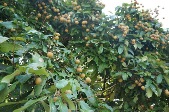 (球场中的龙眼树,可以随便摘,这在国内是没有的。)