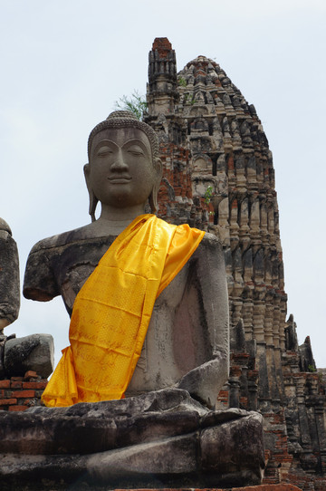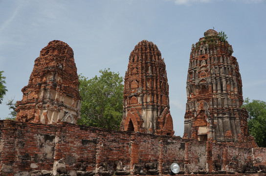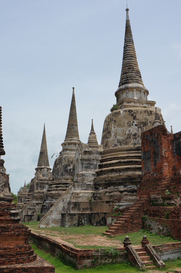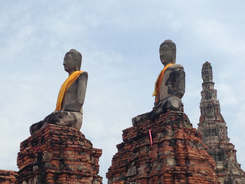 王朝故址位于市北面72公里的Ayuthaya, 在王朝的黄金时代,这里金碧辉煌,是当时的都城。但王朝被占领后,经过战火的摧残,如今大都残破了,斑驳的佛塔、宫殿的残柱、残墙、几座兀立的浮屠,空旷、深邃的意境,苍凉、凝重的悲壮是现在的看点。