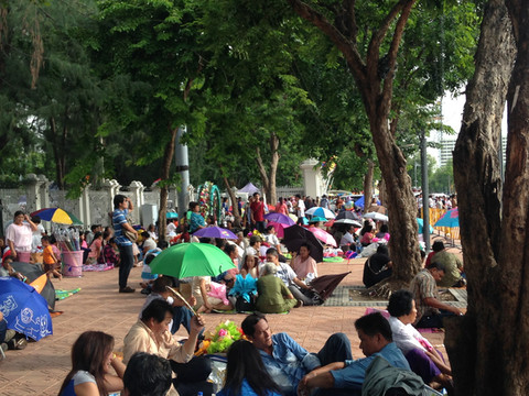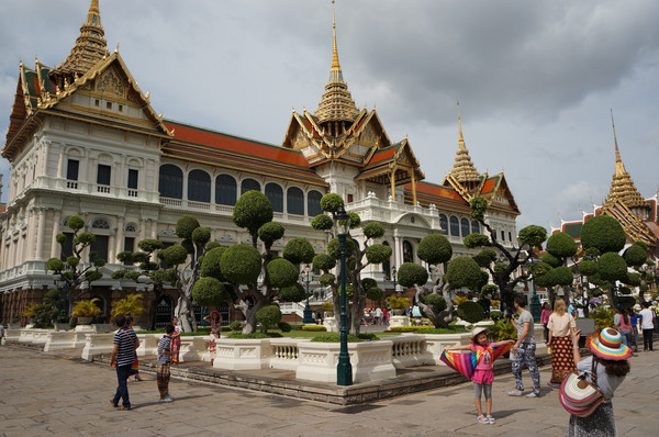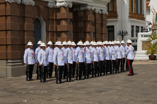 8:30开门。门口皇家警卫在站岗,等待着很多的中国旅行团。进不能穿短裤,包括七分裤。门口有卖纱笼的地方,100泰铢一条,裹到裤子外面,就算仪容整洁。
