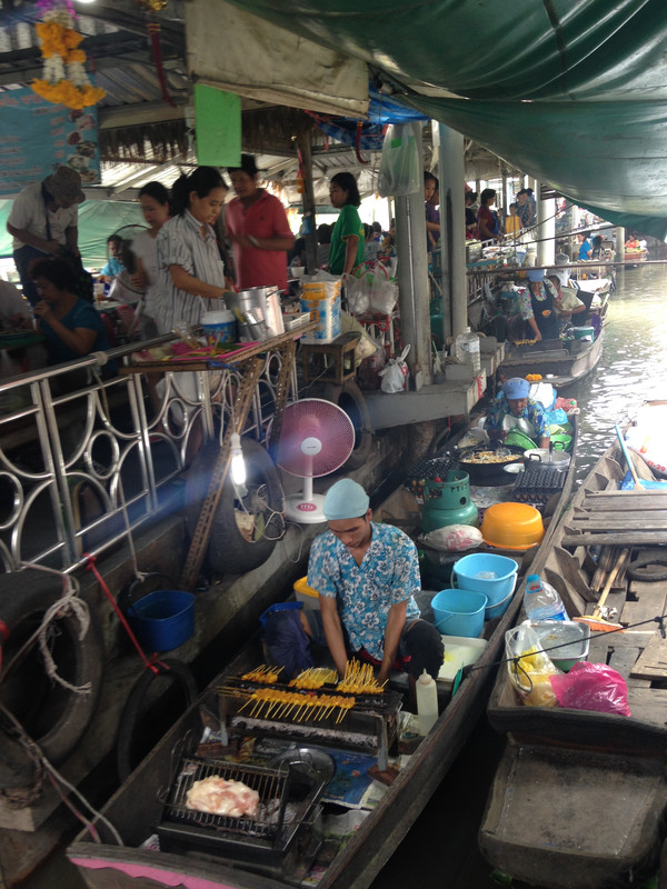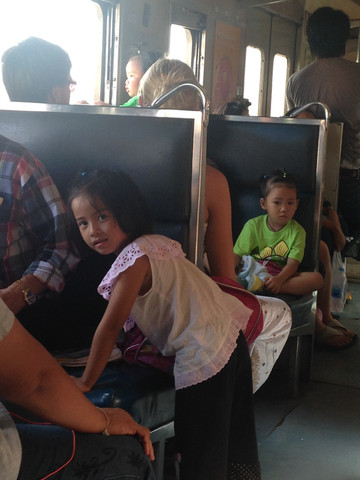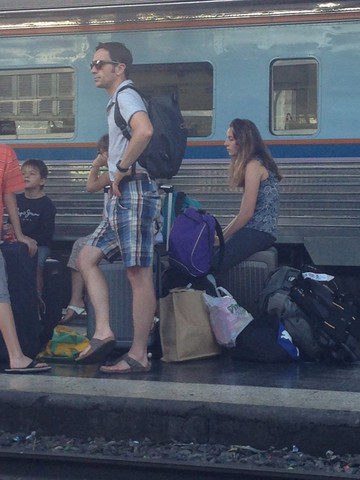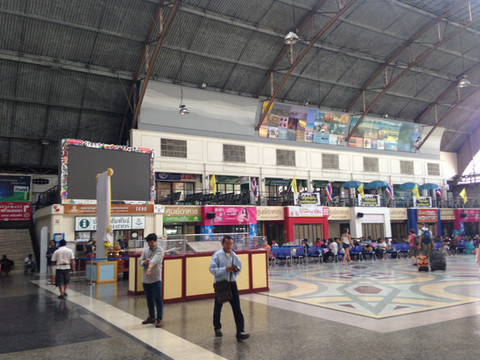 去是要坐火车的。早晨赶早,坐出租车到了火车站(HualumpongStation)。往去的火车半小时一班,见过便宜的火车票,没见过这么便宜的火车票,每人20铢,一个半小时到达。