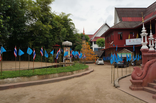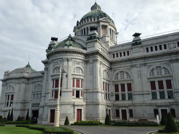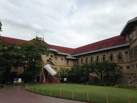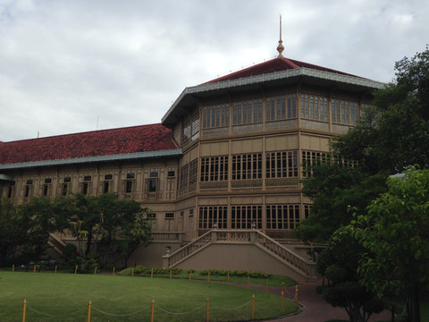 Mansion Palace),是世界规模最大,质地最优良的全柚木建造的宫殿,所以,又称金柚木宫。是历代泰皇御照和艺术品的博物馆,具有相当高的历史意义。在地图上看柚木皇宫离不远,决定坐公交船,下船后步行过去。柚木皇宫下午3点就不接待游客,为及时赶到,没赶上吃中饭前,就坐船出发了。一路上也没什么可以吃的,下船后在烈日下饥肠辘辘步行了半小时才到地方,真是满肚子的怨气,怪自己安排得不好。所幸,3点之前赶到了地方,作为最后一批游客进了宫殿的大门。