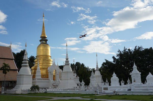 到之前,我们对的了解是:北部第一,也是第二市。1296年起曾为兰纳王朝都城。市内寺庙约百座,以“美女和玫瑰”享誉天下,是东南亚著名的避暑旅游胜地。当然,女神邓丽君最钟情的一座小城,也是吸引华人游客的一个噱头。飞机飞到上空,确实有点小小的激动。
