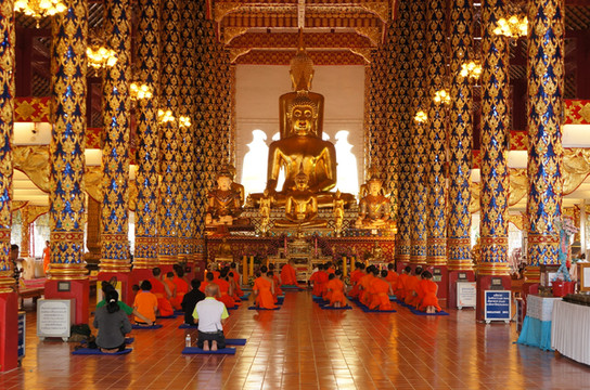 (寺庙里的修行,游客也可以参与,甚至一些狗狗也在里面听,脱离世俗的优雅与慵懒)