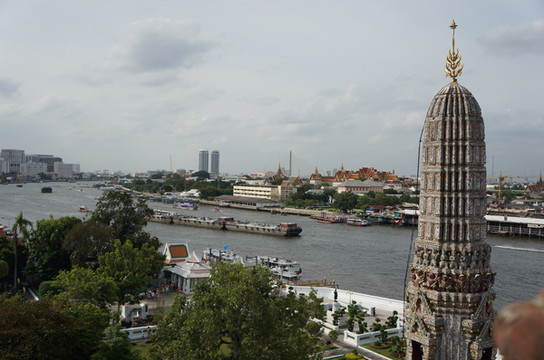 出来,乘轮渡到。在王朝时是一座古寺,庙内有座高达79米的“拍攀”大佛塔,是规模最大的一座大乘塔,周围尚有四座与之呼应的陪塔,形成一组庞大、美丽的塔群大佛塔与隔河相望。我们登上大佛塔,俯望。