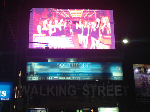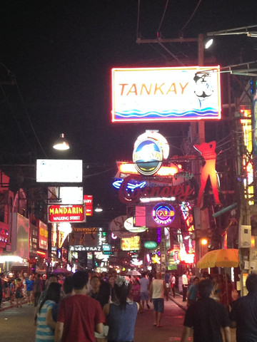 芭堤雅的夜生活是22:00才开始的,各类演出最晚一场均是21:00,演出结束,走到大街上,各色酒吧才陆续开始营业,各种SHOW的演员也要进一步招揽生意,芭堤雅真正的夜生活才开始。看完Tiffany's Show,乘坐双条车,到达著名的红灯区WAKING STREET,感受一下芭堤雅的氛围。