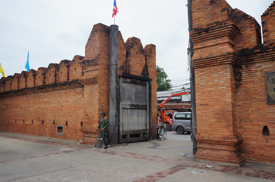 宾馆外就有租自行车和摩托车的小店,来的游客一般喜欢租摩托车,方便省力,每日150铢。我从来没有开过摩托车,虽然小店的老板极力想让我租摩托车,并跟着我试驾了一把,但出于安全考虑,我们还是租了自行车,每辆50铢。对于来自帝都的人,长宽都不到2公里的的古城,简直就是弹丸之地。