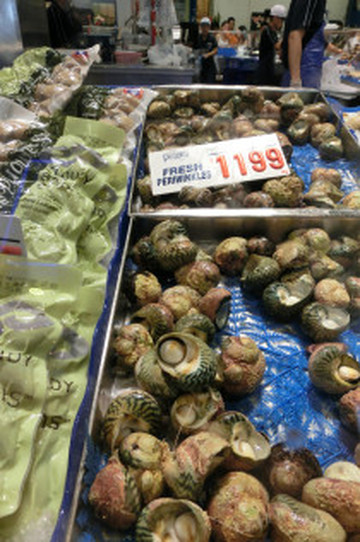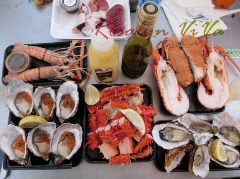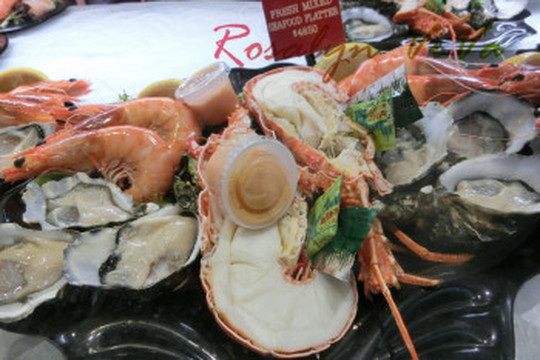 所有的价格都会标注在生鲜上,可以兜一圈计划好一餐之后再一一下单。大门口的生蚝集中营——基本标的都是澳币,6个一打的价格
