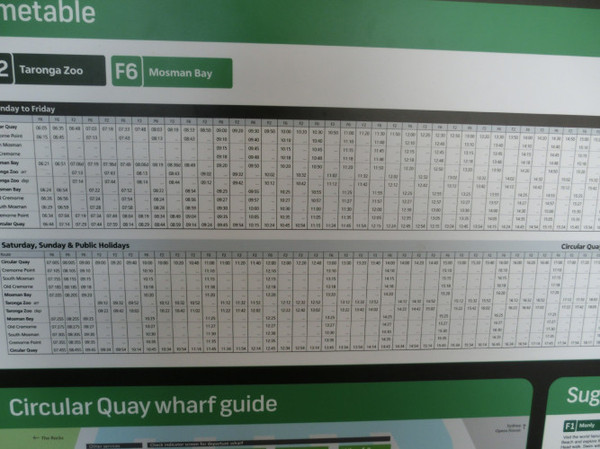 岩石区往里就是去往taronga zoo(塔荣嘎动物园)的轮船,这是排班表。因为起的晚,viva没有去动物园严重鄙视一下,不过经过调查,塔荣嘎貌似是悉尼v认为最好的动物园,有时间请去!