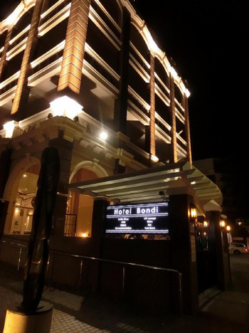 机场到bondi beach 还是有点距离的 毕竟一个在南,一个在东,我们做400路转了车(实在忘记)到了bondi,夜间的海滩热闹非凡。