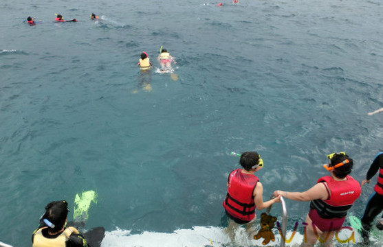 在去之前攻略上说是有类似这样的货会来抢食吃,等坐下之后发现有些都是在水中游的不足为惧,不过。。。不过。。。。有些是会飞的- - |||真的会来抢食的哦,管好自己的碗吧~~~
