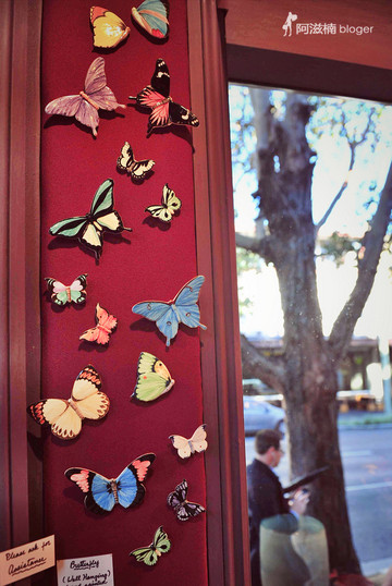 时尚街道莎莉山(Surry Hills)有一家唯一以中文名字命名的店【陈中光贸易有限公司】大门是火红色很耀眼。蝴蝶遍布房间有着多彩的浪漫调感。看外表以为是传统中式店铺,而内里售卖的工艺品饰品的款式却决不俗套以泰式日式欧美款为主。老板泰国人,连打出来的包装都很注重细节象一件艺术品。商品价格也都合理适中,一套精制的落了蝴蝶的陶瓷杯也不过200多元人民币。