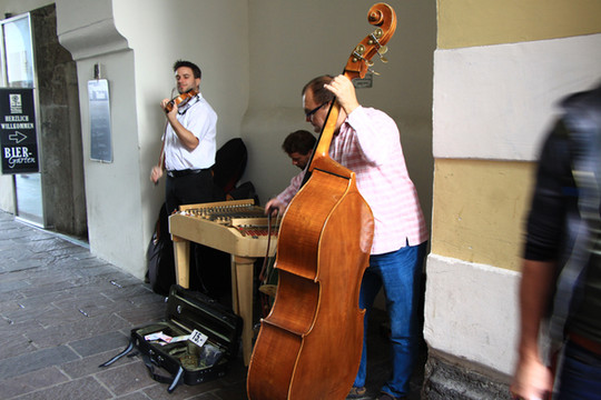 茵斯布鲁克是阿尔卑斯山峡谷里、茵河边的一座城市,茵斯布鲁克的字面意思就是“茵河上的桥”。我们到的那晚一直下着雨,但第二天则阳光灿烂,白云浮浮。茵斯布鲁克可以说是哈布斯堡家族的起身之谷,是哈布斯堡家族的权力与版图走向颠峰的见证,哈布斯堡家族在茵斯布鲁克居住了很久。哈布斯堡家族是欧洲最重要的一个家族,1273年,哈布斯堡家族的鲁道夫一世被选为神圣罗马帝国皇帝。1438年开始神圣罗马帝国皇帝由哈布斯堡家族世袭。15世纪时,提洛公爵菲德烈四世,定茵斯布鲁克为首府,而迈希米连大帝在位时所盖的黄金屋顶,也成为茵斯布鲁克的著名象征。在马克西米利昂一世统治时期茵斯布鲁克成了国家中心。哈布斯堡家族曾逼迫菲迪南退位,1914年菲迪南遇刺,引起第一次世界大战,大战后奥匈帝国解体,直到这时,哈布斯堡王朝才退出欧洲历史的舞台。哈布斯堡家族在长达八个世纪的欧洲的宫廷争夺和战争中,一直起着极其重要的作用,其家族成员曾出任神圣罗马帝国皇帝,奥地利公爵、大公、皇帝、匈牙利国王,波希米亚国王,西班牙国王,葡萄牙国王,墨西哥皇帝和意大利若干公国的公爵。哈布斯堡王朝后期繁衍甚广,因而出现奥地利哈布斯堡皇朝、西班牙哈布斯堡王朝和哈布斯堡·洛林皇朝三个分支。