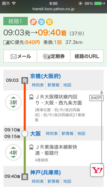 和是连在一起的。从京桥站到需要做地铁。价格为240日元。JR west pass这时候无法使用,必须自己买票。的地铁票是非常小的一张纸,大家要注意保管哦。