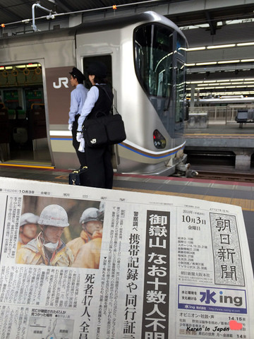 由于去鸟取由良的车次非常少,错过了一班下一班就要两小时以后,所以我们提前半个多小时就在JR车站等待了,闲来无聊买了份朝日新闻,很大的篇幅都在讲最近的火山爆发。