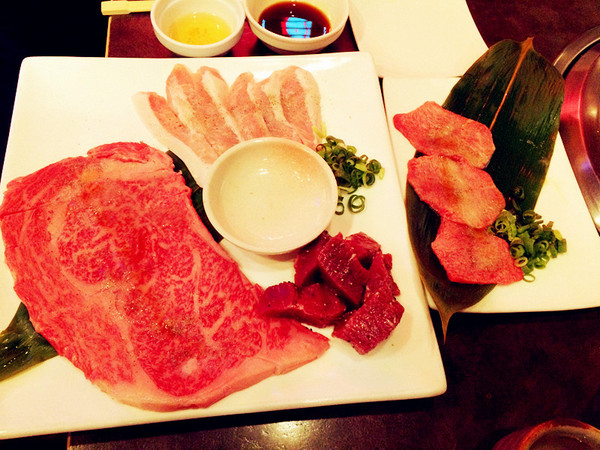 当天晚上我们再次品尝了的烧肉料理。四人份的牛肉吃到撑,价格在12000日元左右。