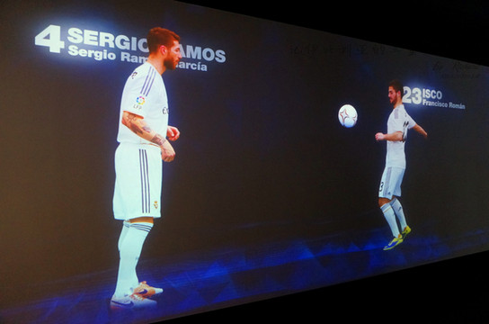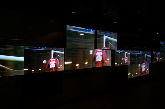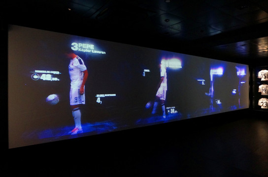 往下一个楼层为感官体验室,展示的主要是球员主题。这是球员颠球的动图,动作很慢,仿佛是在教学示范。