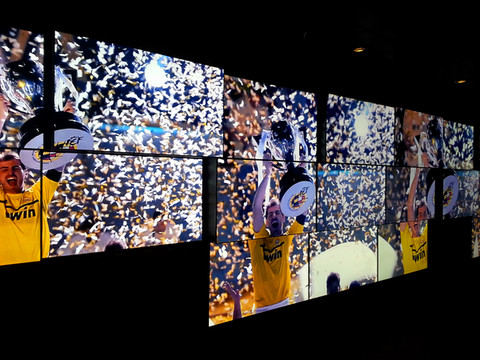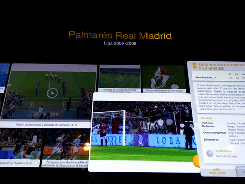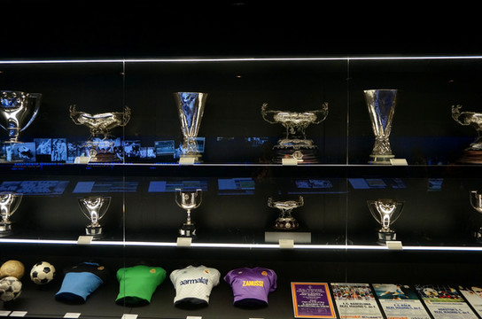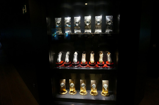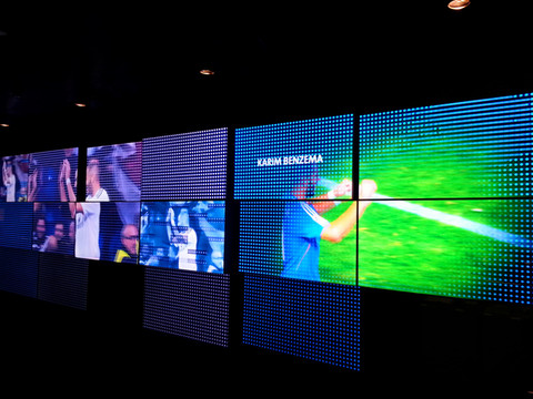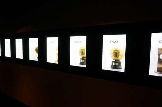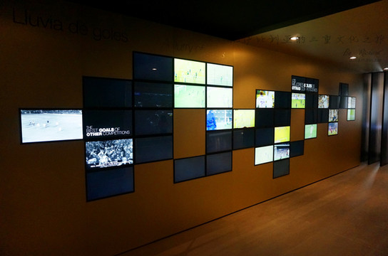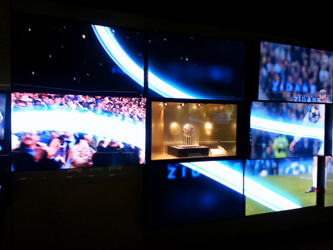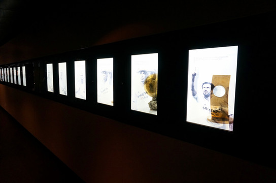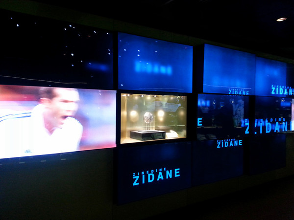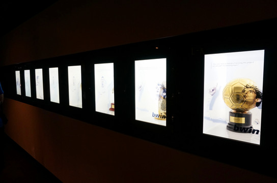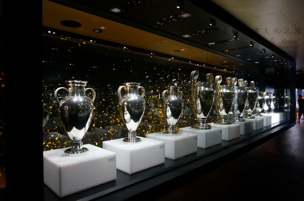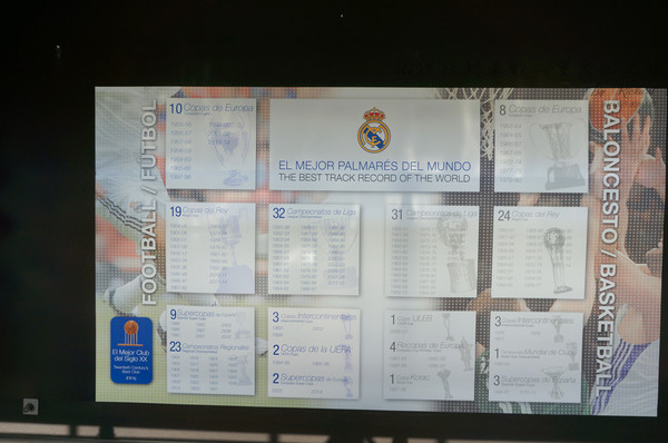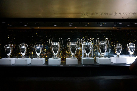 欧文、菲戈、齐达内等皇马大牌球星的奖项汇聚于此,奖杯的橱窗玻璃带液晶显示,每隔一段时间会变换。