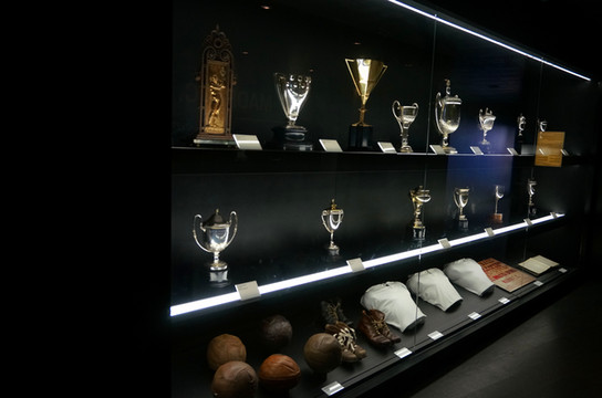 展示的物品体现出这只百年球队的文化底蕴。看得出这些奖杯都是球队较早时期所获得。