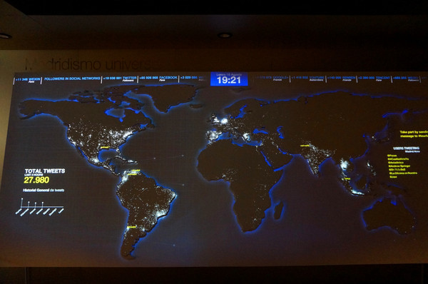 体验室挂着巨大的液晶显示的世界地图,如果游客有推特,可以hashtag#tourbernabeu,然后在地图上面找到游客的登陆名。