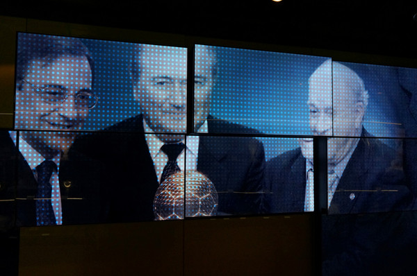 欧足联主席布拉特向俱乐部颁发奖杯。