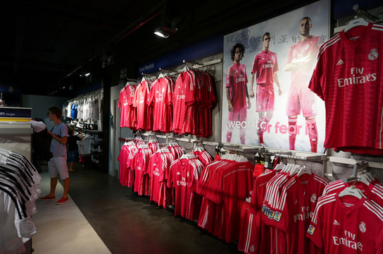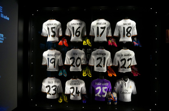 球衣展示2柜:其中还有迪玛利亚的球衣——写这篇游记的时候迪玛利亚已离开皇马投奔曼联。