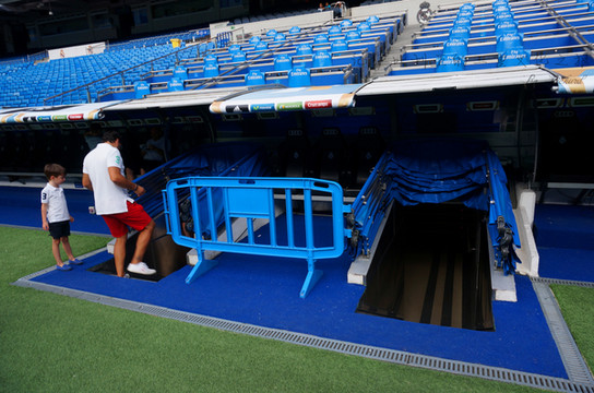 球员通道,为球员安全考虑,必要时通道可以撑起顶棚。