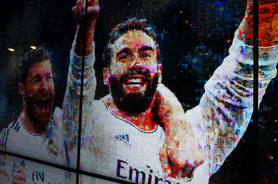 这里有个免费自拍照处,但是拍出的照片并不会给你成像的相片,而是成为一个个小的人物头像照,然后在大屏幕上组合成一个皇马一线球员的脸谱。