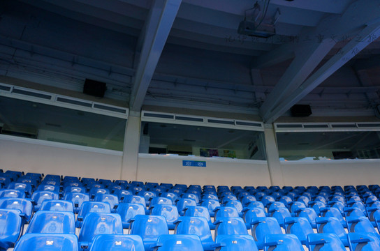 首先通过室外钢楼梯来到最顶层看台,俯瞰整座球场。
