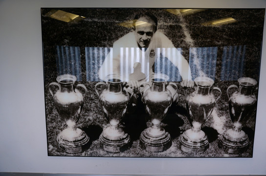 墙壁上展示的迪·斯蒂法诺于1956年至1960年间帮助球队夺取的五届欧洲冠军杯奖杯。