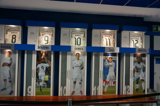 主队更衣箱,10号J罗世界杯后刚刚转会至皇马。