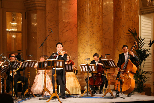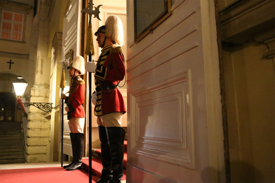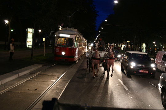 虽然对音乐一窍不通,但来也要西装革履,金色大厅(Goldener Saal) 享受一番莫扎特的音乐,作为一种经历,也是值得的。最后一天的晚餐安排在霍夫皇宫。霍夫皇宫是奥地利历史上多位皇帝的行宫,直至今天依然是总统的住所。由希尔顿酒店乘坐马车,与有轨电车和汽车并行,华灯初上,车水马龙,宛若回到18世纪。皇宫的晚餐在悠扬的音乐中进行,少男少女翩翩起舞,衣香鬓影,吃的已经不是一顿普通的晚餐,而是一场终生不会离去的梦境。真正是宝马雕车香满路,东风夜放花千树。