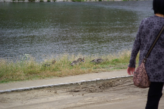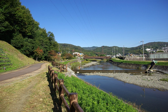 说着说着,我们就走到一条河流的旁边,这条河水质清澈略带些绿色,比更加宽阔。他说,这就是桂川,上次你提到的洪水的灾害,现在的修复工程还在继续呢,说完他指了指不远处的一处工地,那儿还有围网还留有痕迹呢。去年9月份的时候,因为罕见的连续暴雨造成桂川洪水泛滥,周围的商铺都大量进水,造成了不少的损失。当时我曾经在博客给他发了一个留言,表达问候,没想到他还记得这件事情。