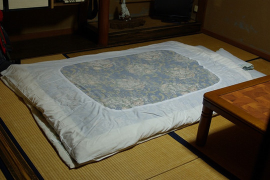 我们就在那个日式客厅看电视聊天,客厅有一样设施也很特别,日语叫做コタツ(炬燵),是的传统取暖用具,中文里也叫暖桌或被炉。(摘自维基百科:现代的炬燵是一张正方形矮桌,上面铺上一张棉被子,桌下有电动发热器,通常连着桌子结构装嵌。炬燵放在薄垫子之上,坐在垫子上把腿和脚、甚至整个身体伸进暖桌下取暖。天气回暖后可以拿开被子,炬燵变成一张普通的矮桌使用)。